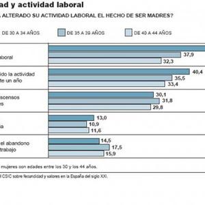 Casi la mitad de las mujeres que trabajan y han sido madres han alterado notablemente su actividad laboral, bien por reducción de jornada o por abandono, según revela un estudio del Consejo Superior de Investigaciones Científicas (CSIC) realizado con 9.767 mujeres y presentado ayer. Esta encuesta avala con datos lo que hasta ahora eran percepciones, como el hecho de que cuanto más preparada está la mujer menos se casa y menos hijos tiene, o el declive del mito de la «realización» femenina a través del trabajo: el 53,7% de las mujeres se iría a su casa si les tocase la lotería.